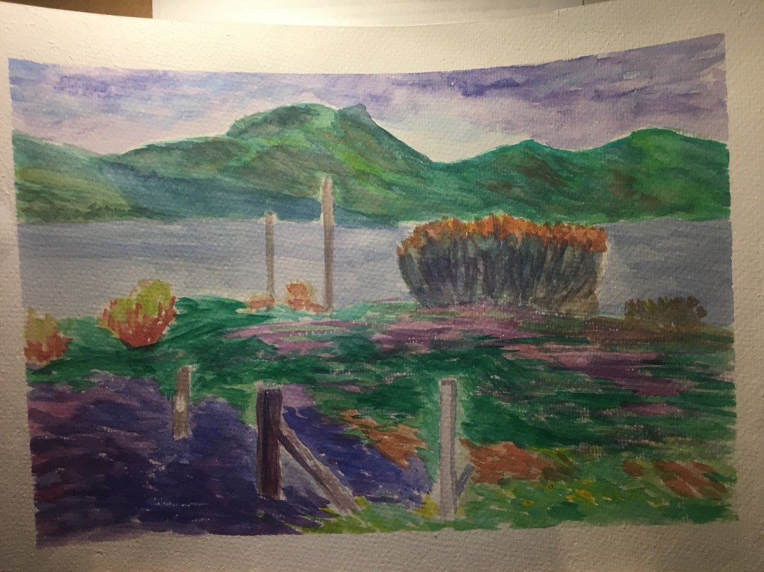 We´re painting sea what should be fun. Something I want to learn. Guache is another mysterious thing I discovered. That´s how I make the waves…It actually doesn´t go that bad and I´m actually quite happy with this painting.